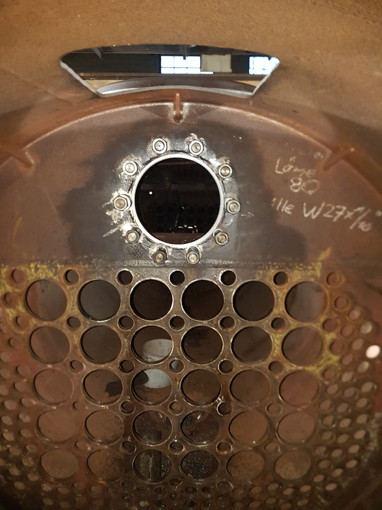 Nach den Nikolausfahrten kehrte keine weihnachtliche Ruhe im Lokschuppen ein, vielmehr galt es, für die nächsten Arbeitseinsätze der Eisenbahnwerkstätten Krefeld (EWK) die Vorraussetzungen für die Durchführung der Arbeiten zu schaffen. An drei Tagen zwischen dem dritten und vierten Advent wurden die im September durch die EWK begonnen Arbeiten an den Dampfdomen fortgeführt. Inzwischen sind alle noch verbliebenen alten Stiftschrauben des Speisedoms entfernt und die Gewinde im ersten Gang vorgeschnitten worden. Ebenfalls wurde am vorderen Rohrspiegel der Flansch für den Einbau des Reglerrohres vorbereitet. Die Stiftschrauben zur Aufnahme des Dampfsammelkasten wurden eingesetzt und ausgerichtet.